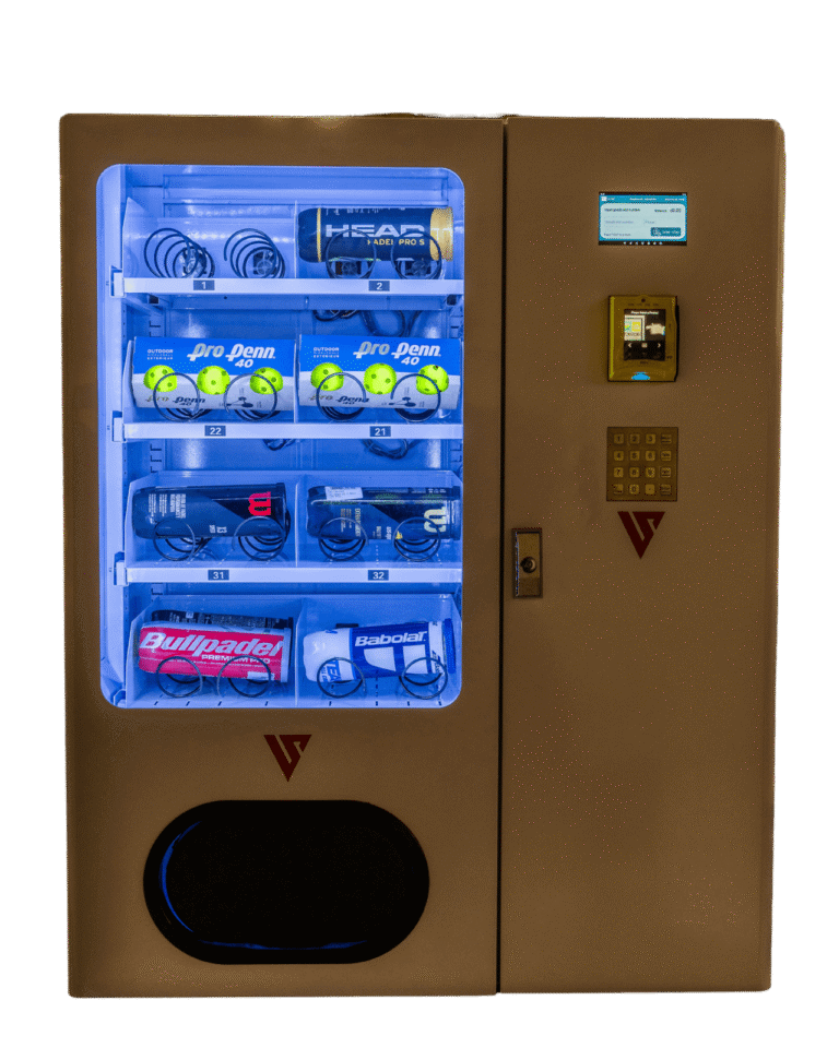 We offer three different size machines for racket hire so make sure you estimate your maximum demand at any one time before you proceed with your choice. The Vendbox 15 is the smallest of the machines with lockers for 15 padel, pickleball or table tennis bats.
